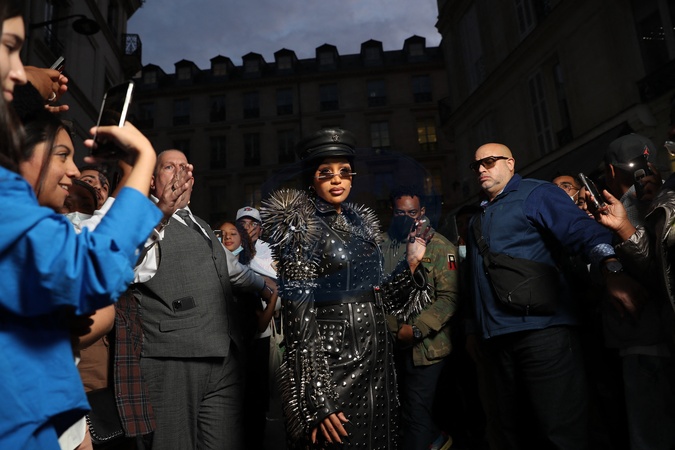Cardi B w plaszczu z jetami, cwiekami i kolcami