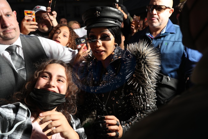 Cardi B w plaszczu z jetami, cwiekami i kolcami
