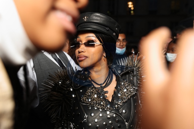 Cardi B w plaszczu z jetami, cwiekami i kolcami