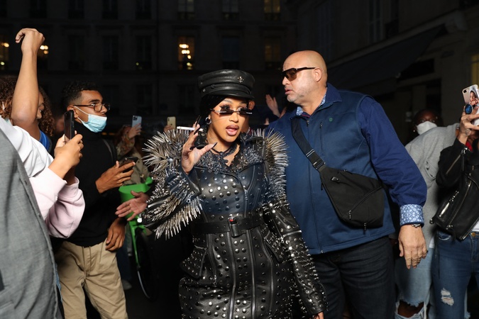 Cardi B w plaszczu z jetami, cwiekami i kolcami