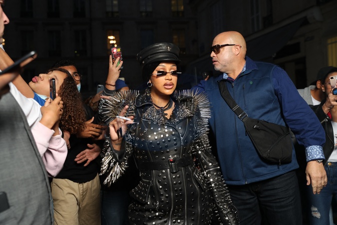 Cardi B w plaszczu z jetami, cwiekami i kolcami