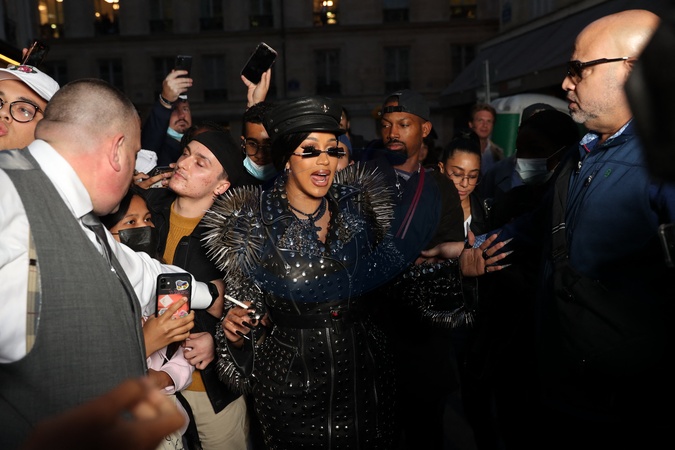 Cardi B w plaszczu z jetami, cwiekami i kolcami