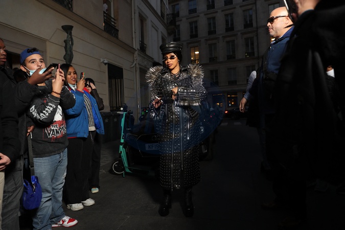 Cardi B w plaszczu z jetami, cwiekami i kolcami