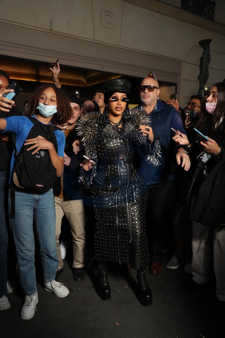 Cardi B w plaszczu z jetami, cwiekami i kolcami