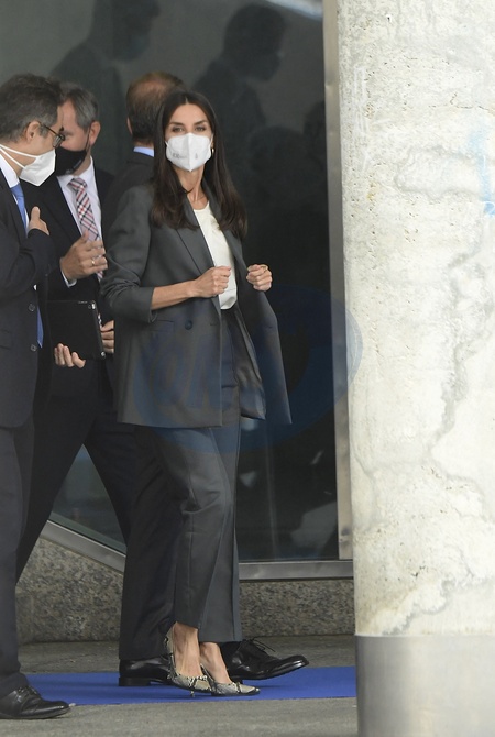 Krolowa Letizia w szarym garniturze i w butach z wezowej skorki