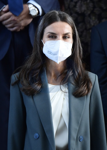 Krolowa Letizia w szarym garniturze i w butach z wezowej skorki