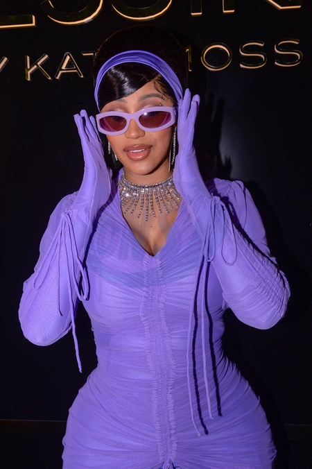 Cardi B cala na fioletowo - total look - Messika x Kate Moss collection