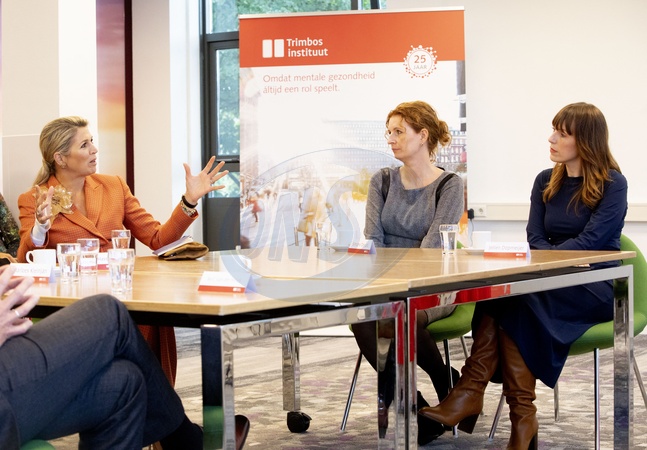 Krolowa Maxima w pomaranczowym garniturze odwiedzila Instytut Trimbos