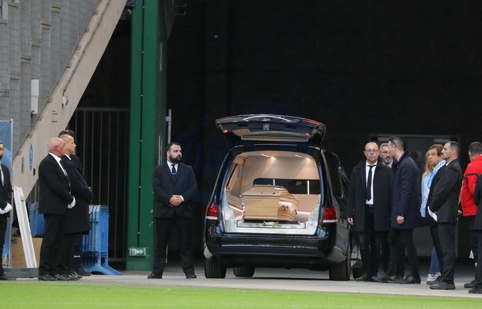Rodzina i kibice na ceremonii pozegnania Bernarda Tapie na stadionie