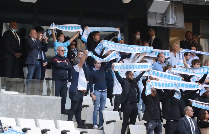 Rodzina i kibice na ceremonii pozegnania Bernarda Tapie na stadionie