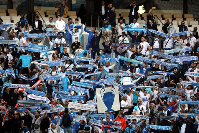 Rodzina i kibice na ceremonii pozegnania Bernarda Tapie na stadionie