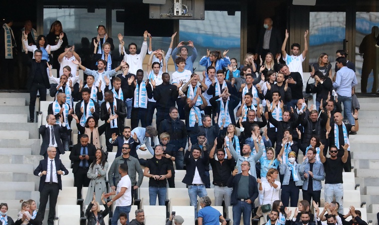Rodzina i kibice na ceremonii pozegnania Bernarda Tapie na stadionie