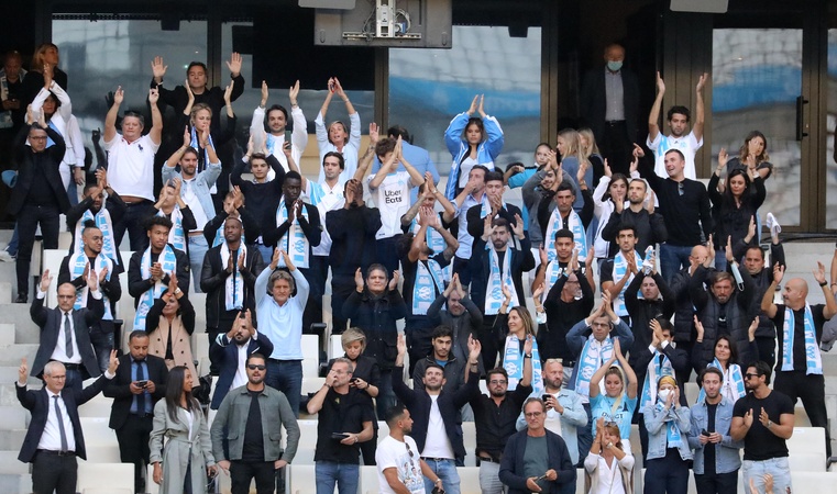 Rodzina i kibice na ceremonii pozegnania Bernarda Tapie na stadionie