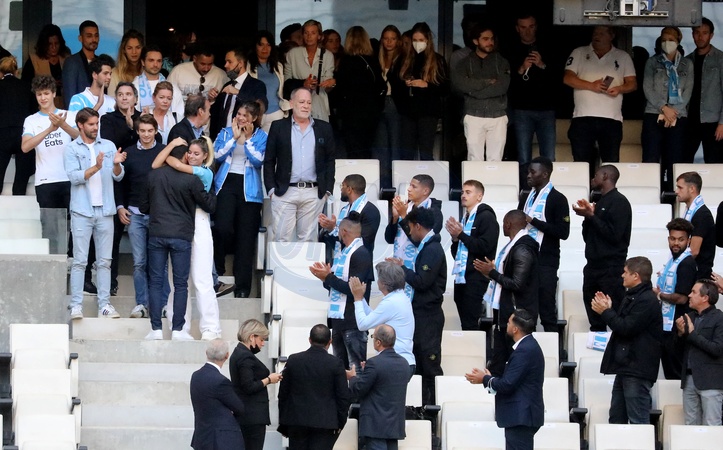 Rodzina i kibice na ceremonii pozegnania Bernarda Tapie na stadionie
