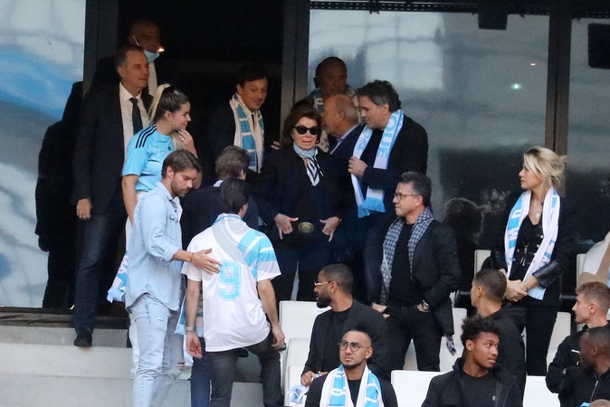 Rodzina i kibice na ceremonii pozegnania Bernarda Tapie na stadionie