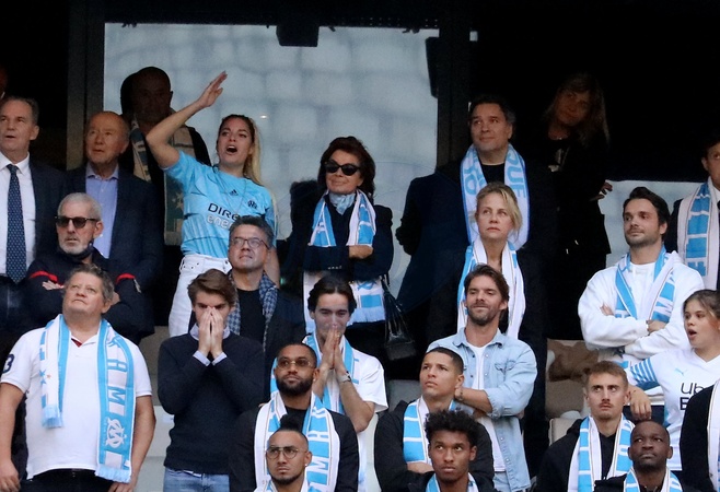 Rodzina i kibice na ceremonii pozegnania Bernarda Tapie na stadionie