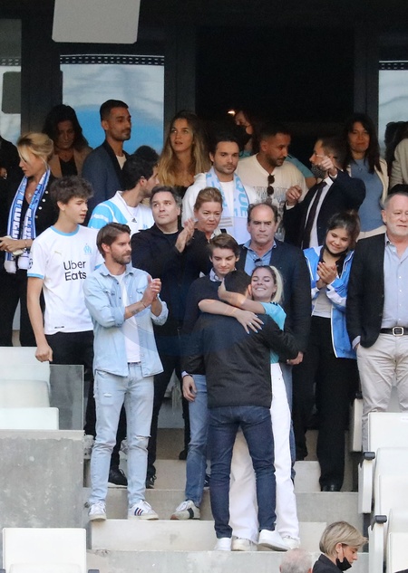 Rodzina i kibice na ceremonii pozegnania Bernarda Tapie na stadionie