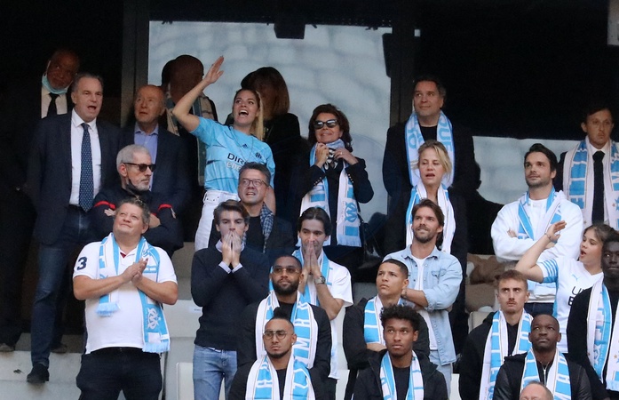 Rodzina i kibice na ceremonii pozegnania Bernarda Tapie na stadionie