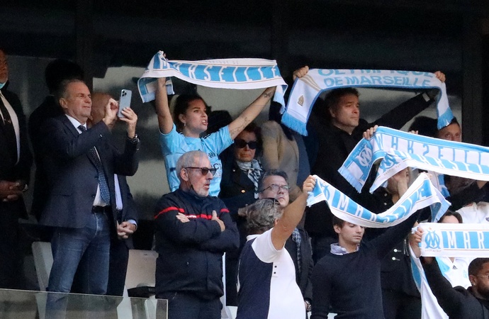 Rodzina i kibice na ceremonii pozegnania Bernarda Tapie na stadionie