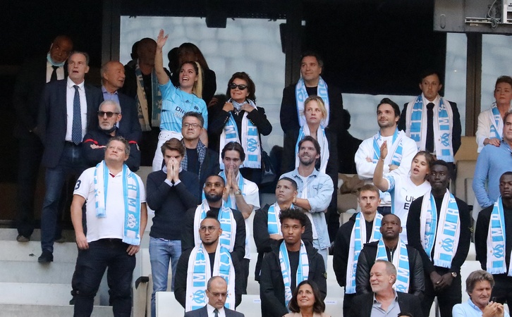 Rodzina i kibice na ceremonii pozegnania Bernarda Tapie na stadionie