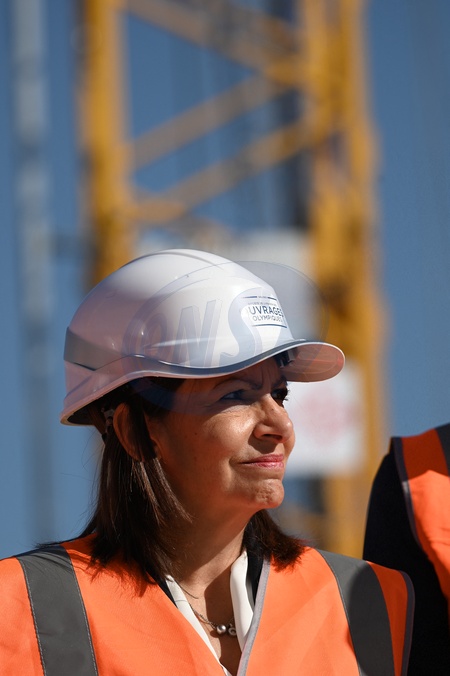 Emmanuel Macron i Anne Hidalgo w przyszlym miasteczku olimpijskim