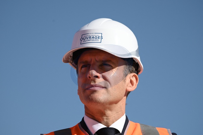 Emmanuel Macron i Anne Hidalgo w przyszlym miasteczku olimpijskim