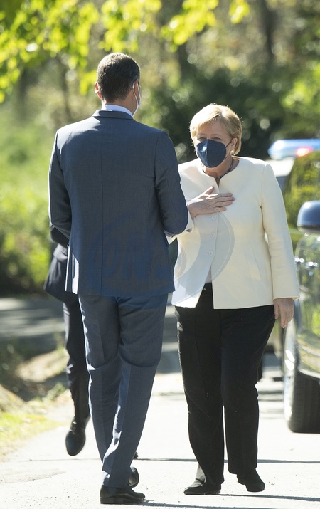Angela Merkel i krol Hiszpanii Filip na ceremonii Carlos V European Award