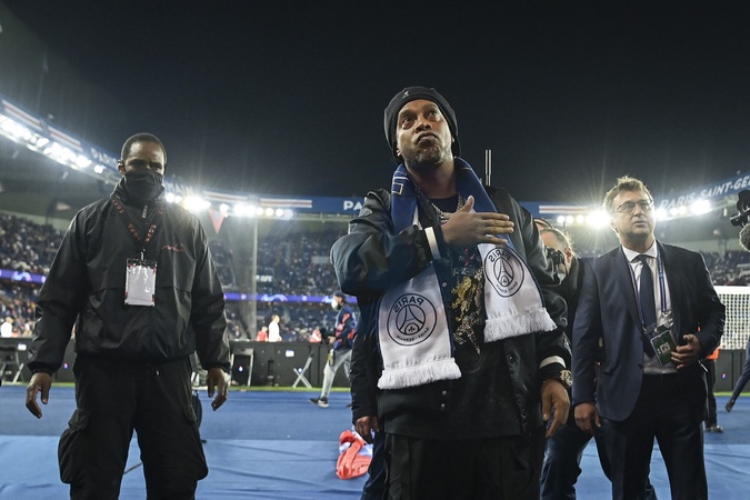 Ronaldinho podczas meczu Ligi Mistrzów PSG - RB Liepzig