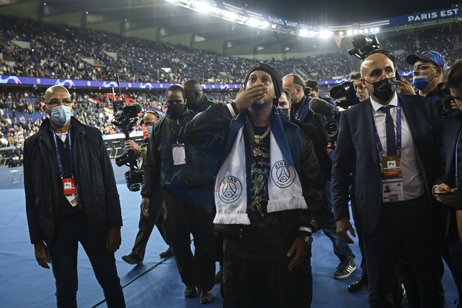 Ronaldinho podczas meczu Ligi Mistrzów PSG - RB Liepzig