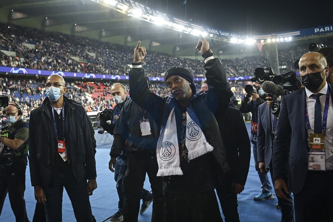 Ronaldinho podczas meczu Ligi Mistrzów PSG - RB Liepzig