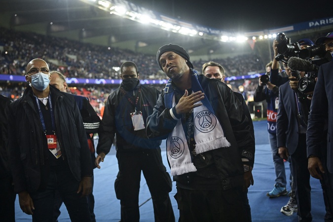 Ronaldinho podczas meczu Ligi Mistrzów PSG - RB Liepzig