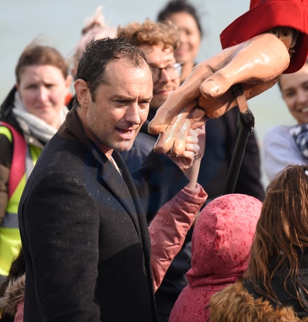 Jude Law z „Little Amal”, 3,5-metrową marionetka mlodej syryjskiej uchodzczyni