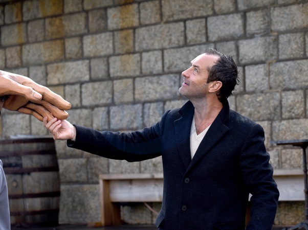 Jude Law z „Little Amal”, 3,5-metrową marionetka mlodej syryjskiej uchodzczyni