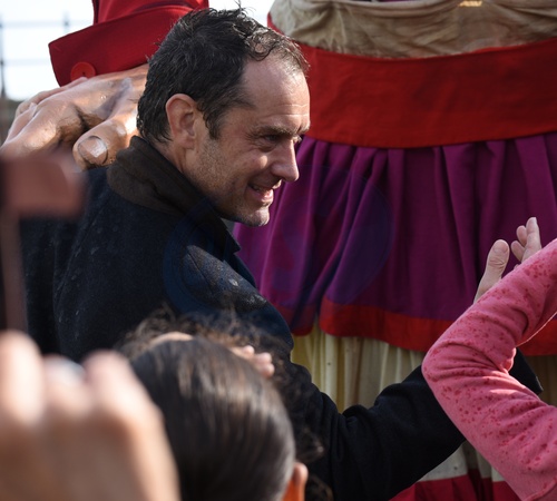 Jude Law z „Little Amal”, 3,5-metrową marionetka mlodej syryjskiej uchodzczyni
