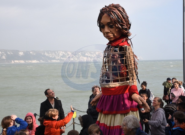 Jude Law z „Little Amal”, 3,5-metrową marionetka mlodej syryjskiej uchodzczyni