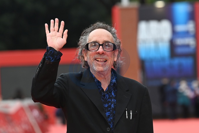 Tim Burton z dziecmi na czerwonym dywanie na Festiwalu w Rzymie