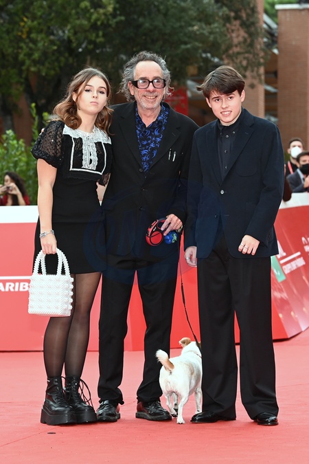 Tim Burton z dziecmi na czerwonym dywanie na Festiwalu w Rzymie