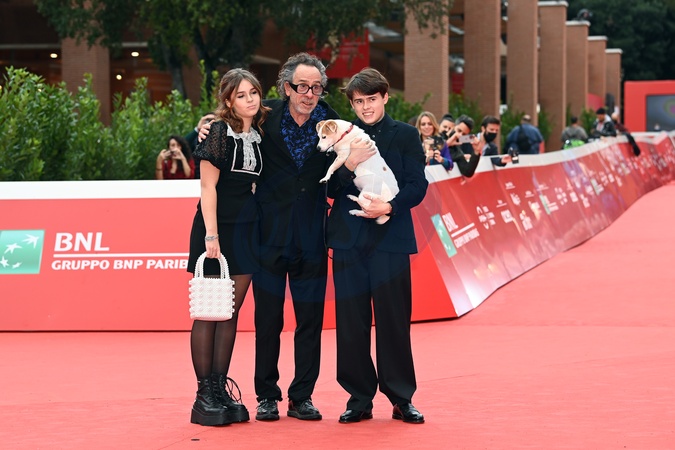 Tim Burton z dziecmi na czerwonym dywanie na Festiwalu w Rzymie