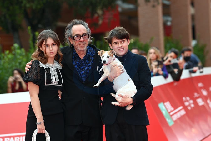 Tim Burton z dziecmi na czerwonym dywanie na Festiwalu w Rzymie