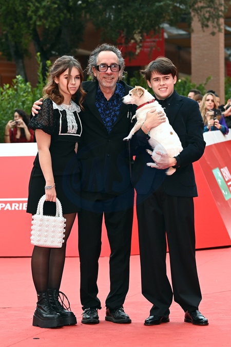Tim Burton z dziecmi na czerwonym dywanie na Festiwalu w Rzymie