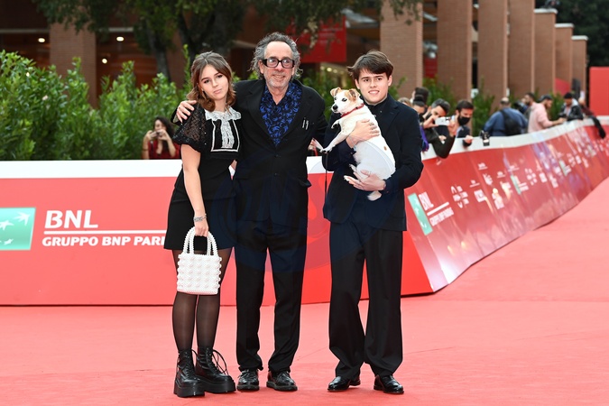 Tim Burton z dziecmi na czerwonym dywanie na Festiwalu w Rzymie