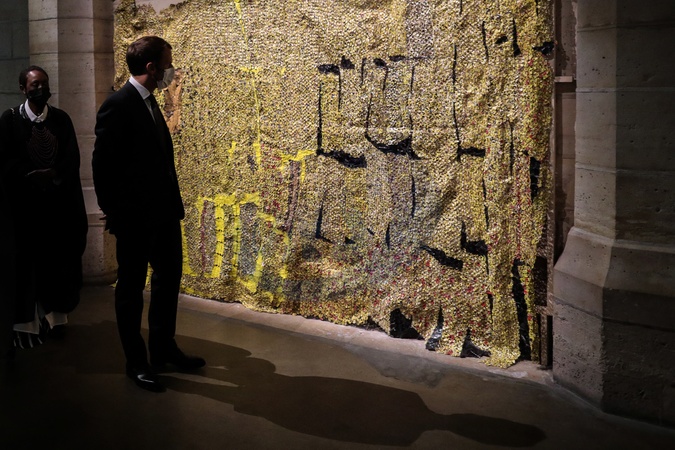 Macronowie na wystawie El Anatsui revisite la conciergerie