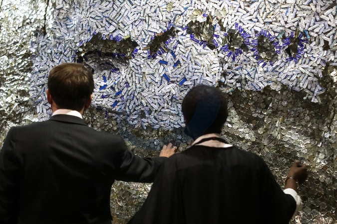 Macronowie na wystawie El Anatsui revisite la conciergerie