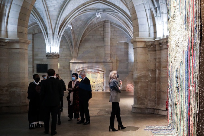 Macronowie na wystawie El Anatsui revisite la conciergerie