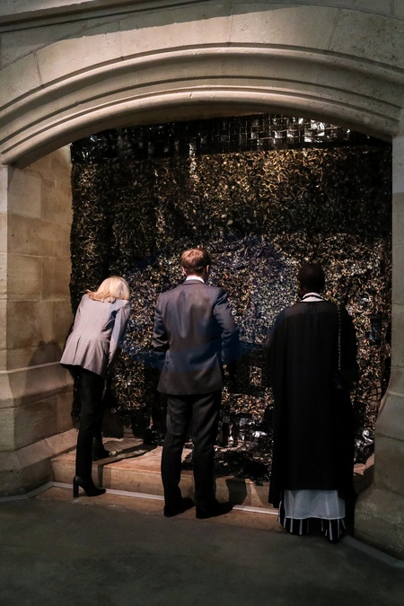 Macronowie na wystawie El Anatsui revisite la conciergerie