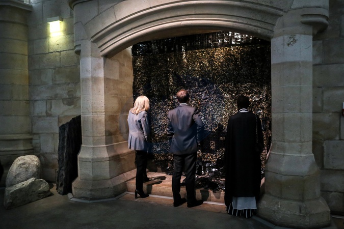 Macronowie na wystawie El Anatsui revisite la conciergerie