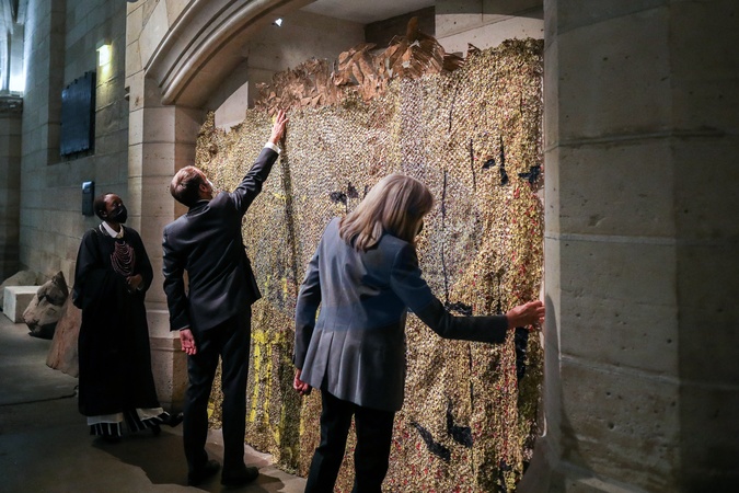 Macronowie na wystawie El Anatsui revisite la conciergerie