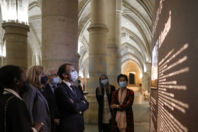 Macronowie na wystawie El Anatsui revisite la conciergerie