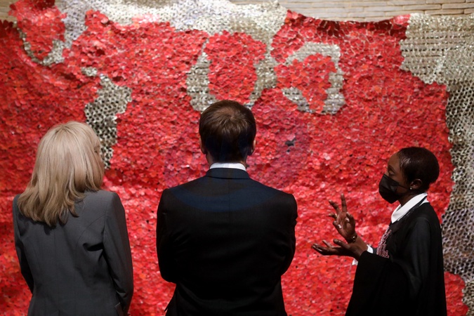 Macronowie na wystawie El Anatsui revisite la conciergerie