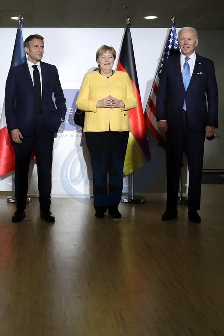Emmanuel Macron, Angela Merkel, Joe Biden